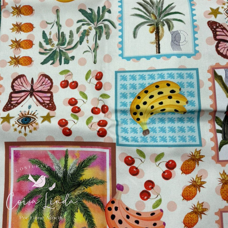 SARJA IPERMEÁVEL PÁSSAROS, BORBOLETAS E FRUTAS