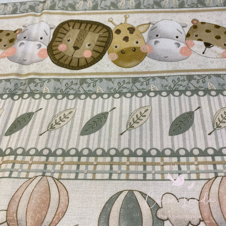 Barrado da Coleção Safari Fuxicos e Fricotes. Estampa digital, tecido 100% algodão . Leões, tigres, macaquinhos, elefantes… uma combinação de selva para sua criação infantil. ATENÇÃO - Ao colocar 1 unidade você estará comprando 0,50 x 1,40 -